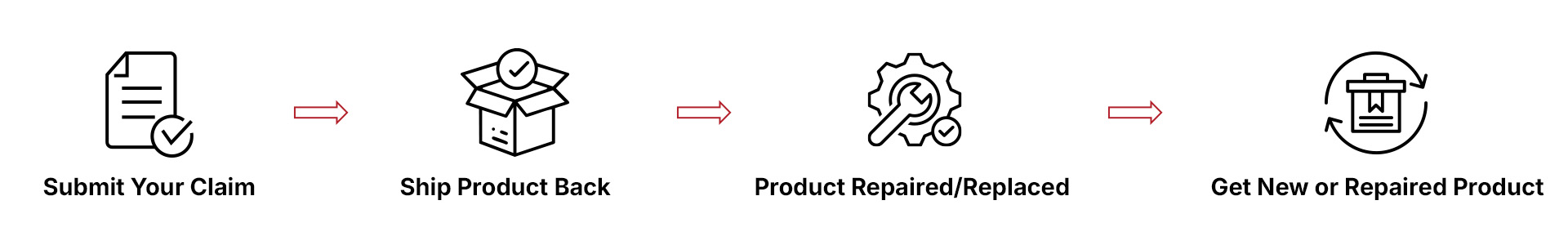 ● Once we receive the returned product and confirm the issue, we will repair or replace it at no cost to you.